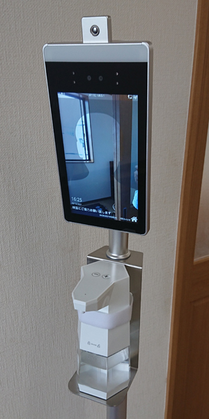 ▲本社玄関にサーモセンサーを設置しています。